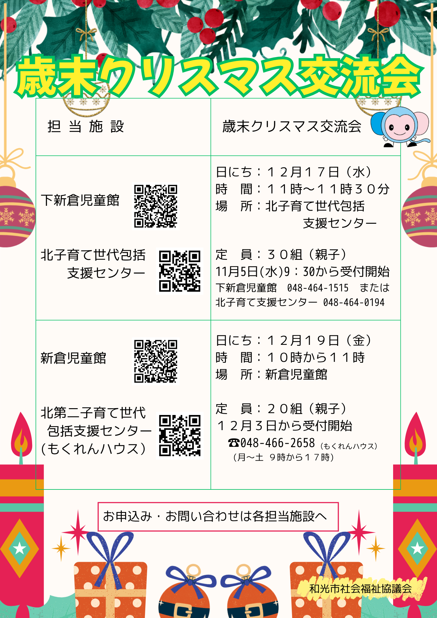 市内児童館や子育て世代包括支援センターにてクリスマス交流会を実施いたします。